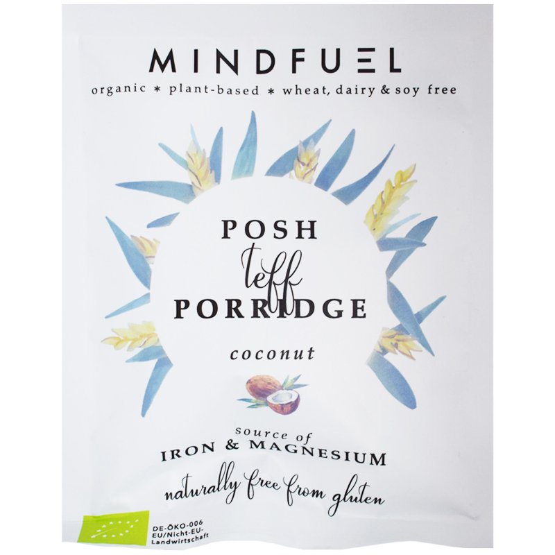 Posh teff porridge är en portionsförpackning gröt gjord på tefflingor. Tillsätt bara vatten och portionen är färdig.